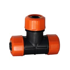 Цанговый тройник для труб 1/2" и 3/4", легко монтируется без инструментов, обеспечивает герметичность, подходит для систем полива и водоснабжения.