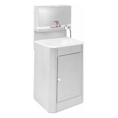 Удобный умывальник с ЭВН 17 л, нержавеющая мойка, 1250 Вт, корпус из белого ЛДСП, идеально подходит для дачи, мастерской или строительного объекта.