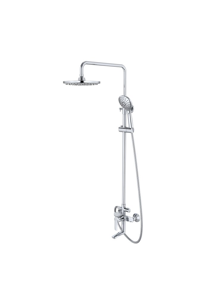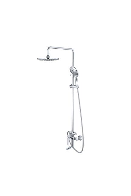 Гарантийный срок: Корпус смесителя – 10 лет, водозапорные механизмы – 5 лет, душевые аксессуары в комплекте – 3 года Душевая система с регулируемой стойкой, двумя лейками и смесителем, устойчива к коррозии, проста в установке, экономит воду и обеспечивает комфорт.