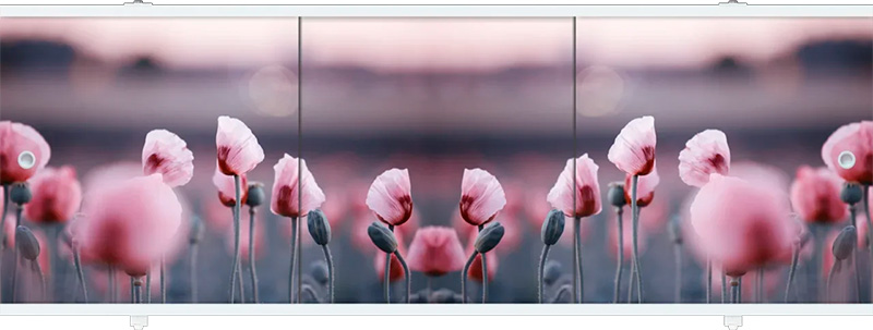 Стильный пластиковый экран 1,68 м «Розовая дымка» с раздвижными дверцами, защищает коммуникации, легко устанавливается и упрощает уход за ванной.