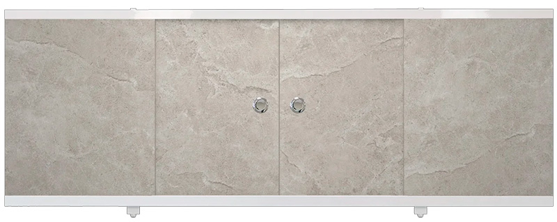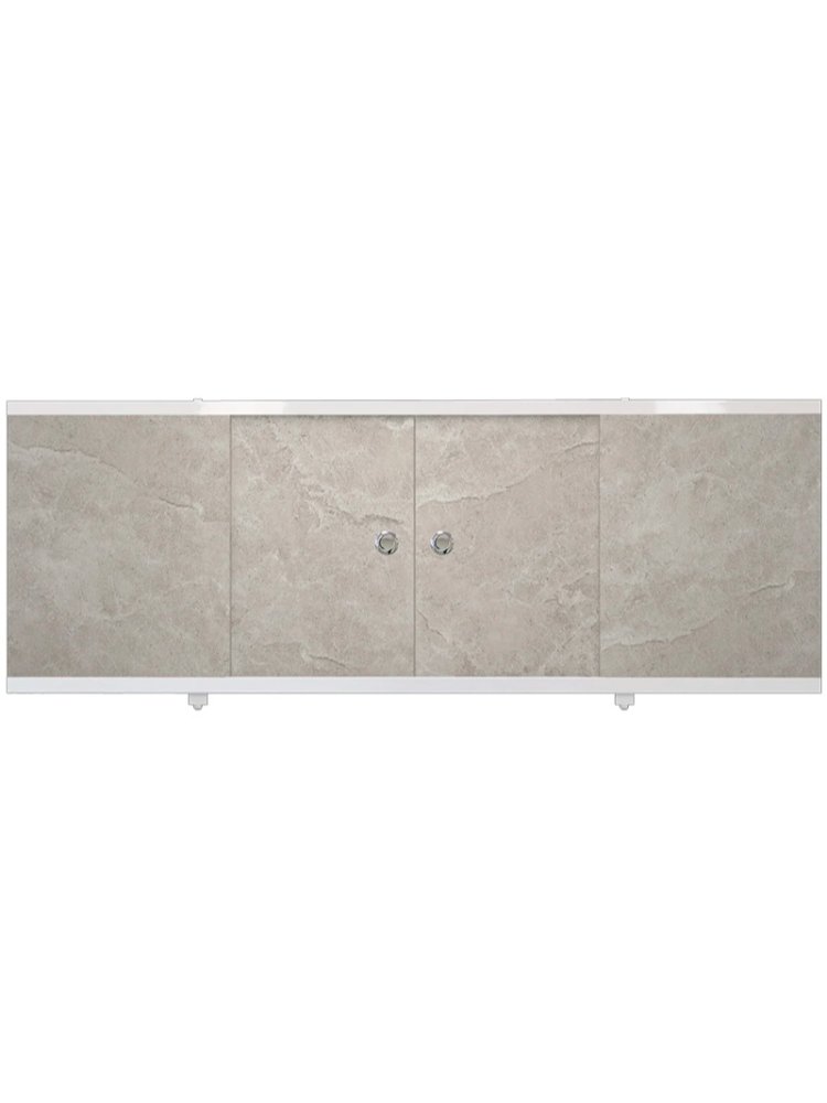 Влагостойкий экран для ванной 1,69 м с отделкой «Камень», раздвижные двери, легкий монтаж, скрытие труб и удобное хранение аксессуаров.