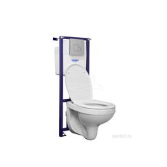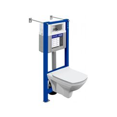 Комплект 5 в 1: - безободковый унитаз Carina Clean On, размеры унитаза - 52,5 x 35,5 см, выпуск - горизонтальный. - сиденье - дюропласт Slim с механизмом плавного опускания (микролифт), с функцией быстрого снятия. - цельная инсталляция Link Pro подвод воды c обоих боков (справа или слева), шаровой кран в комплекте, монтажная высота 110-120 см, ширина - 39,5 см. Для монтажа перед стеной или стеной перегородкой. - самонесущая стальная рама с порошковым напылением (подготовлена для облицовки). 2 болта-держателя для унитаза расстояние между болтами 180/230 мм. - впускной и смывной гарнитуры арматурная группа (в соответствии с DIN с изоляцией от конденсационной влаги) - с накладной панелью PILOT (стекло белое) - в комплекте 2 объема смыва. Комплект инсталляции с унитазом, рамой и клавишей смыва — прочность, экономия воды и современный стиль, для любых санузлов.