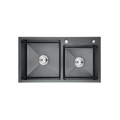 Двойная мойка 780×430 мм, цвет "Графит", устойчива к царапинам, сифон и выпуск в комплекте, современный дизайн и высокая износостойкость.