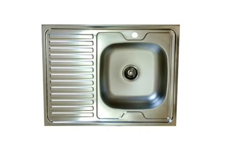 Надежная мойка 600×800 мм из нержавеющей стали, толщина 0,6 мм, чаша правая, глубина 160 мм, устойчива к коррозии, легко монтируется.