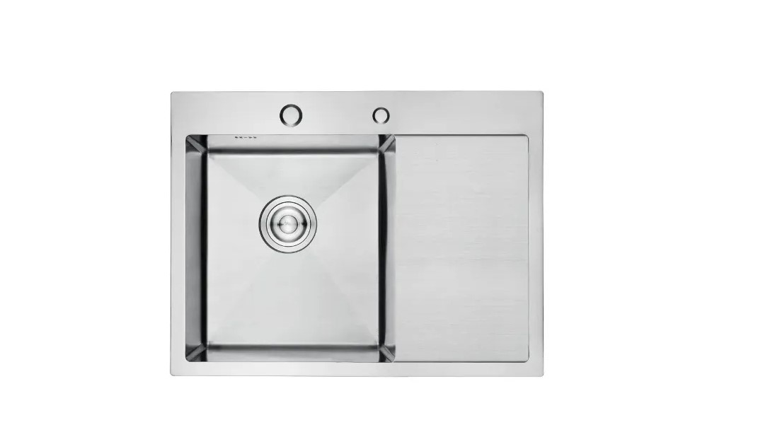 Компактная врезная мойка 580×480 мм из нержавеющей стали с сатиновым покрытием, левой чашей и сифоном — идеальна для кухни любого формата.