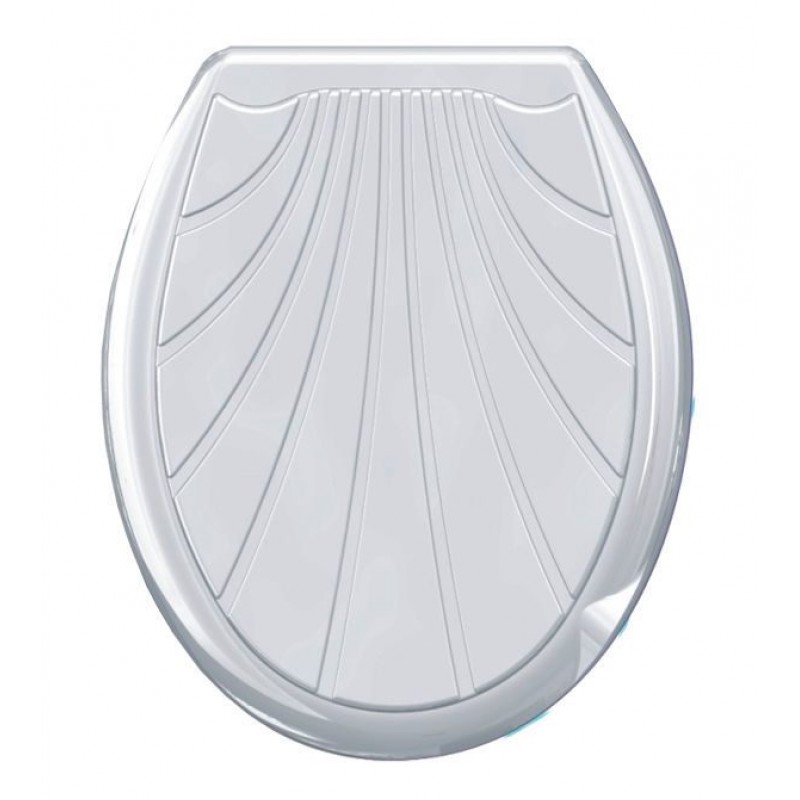 Прочное пластиковое сиденье белого цвета, стильная форма «ракушка», легко моется, быстро монтируется, подходит для большинства стандартных унитазов.
