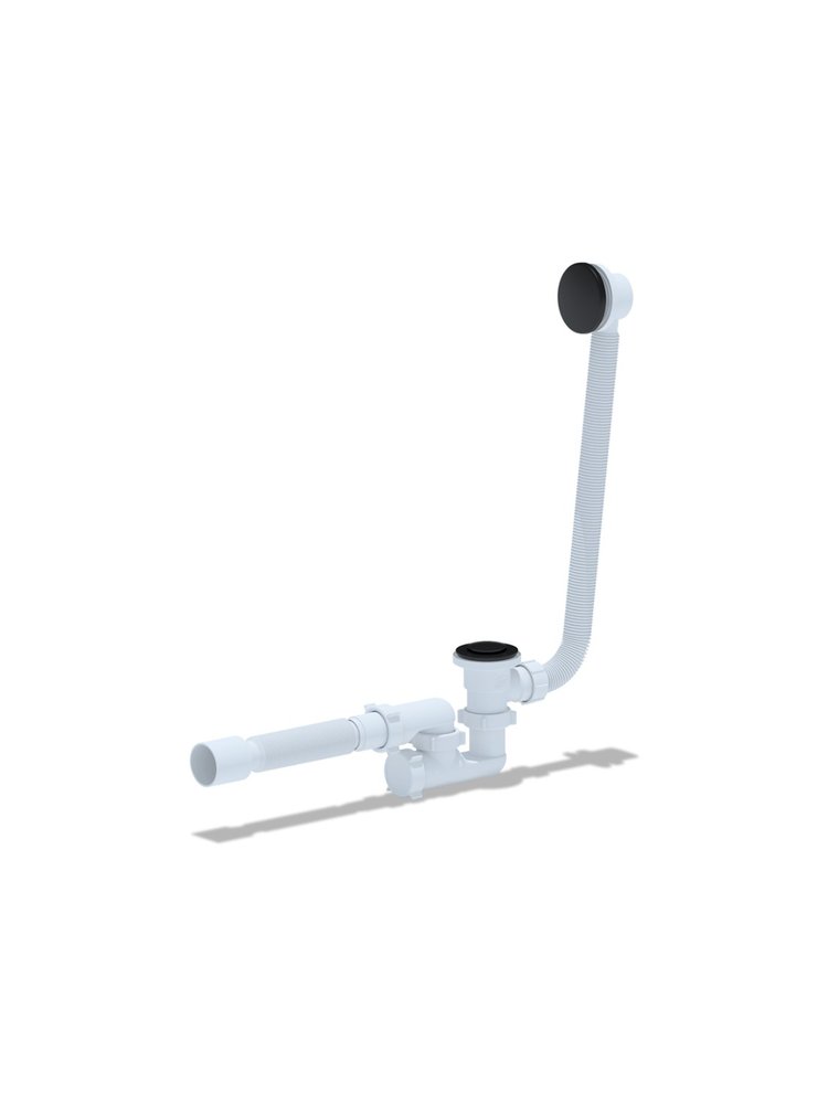 Современное решение для обустройства ванной: сифон с регулируемой высотой и чёрным выпуском, идеально подходящий для ванн с переливом, обеспечивает высокий уровень герметичности и стильный внешний вид интерьера.