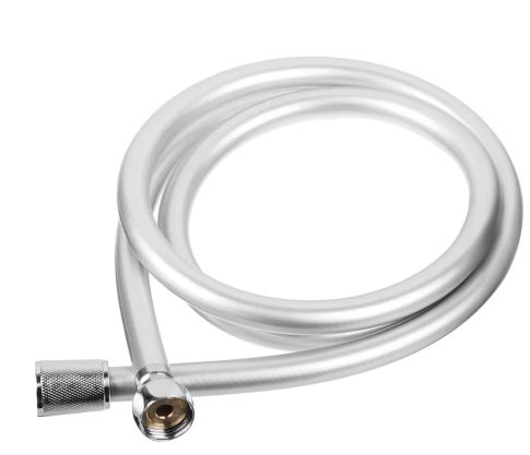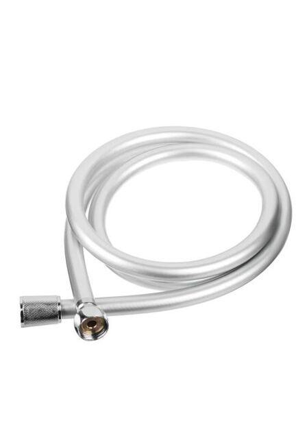 Душевой шланг 150 см с системой антитвист, металлическая оплетка с хромом, устойчива к заломам, стандартные соединения, легкий монтаж.