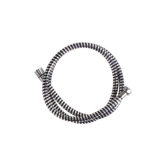 Комплектация: Паспорт изделия и резиновая прокладка с фильтром Длина: 150 см Толщина стенок: 1,5 мм Армированный ПВХ-шланг 150 см с хромированным покрытием, не скручивается, устойчив к износу, совместим с большинством душевых лееек.
