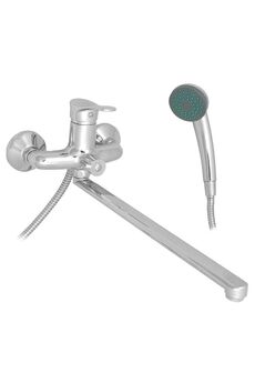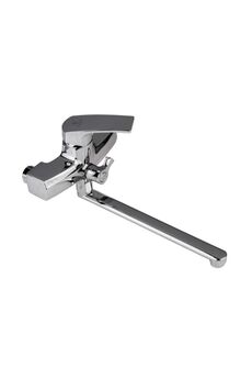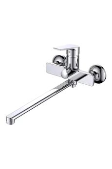 Надежный однорычажный смеситель с длинным (40 см) изливом для ванны, удобство управления, универсальное применение, современный дизайн.