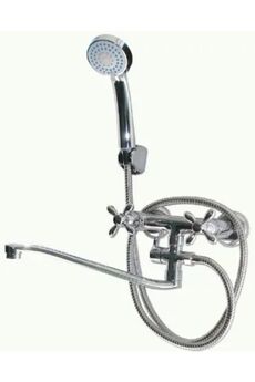 Двухвентильный смеситель с латунным корпусом и изливом 30 см. Прочный, удобный, идеально для ванны. Простая установка и надежная работа.