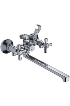 Надёжный смеситель с длинным изливом 30 см, двухвентильное управление, долговечная латунь, антикоррозийное покрытие и удобный монтаж для ванной комнаты.