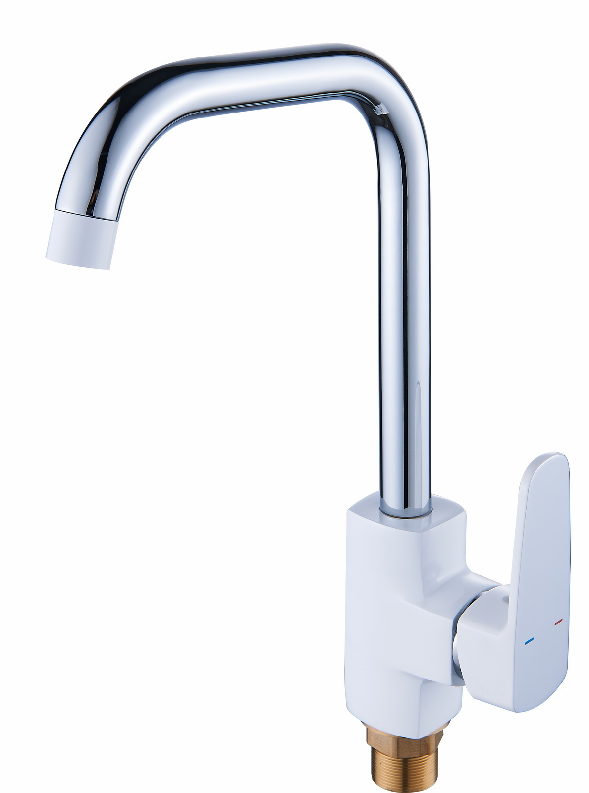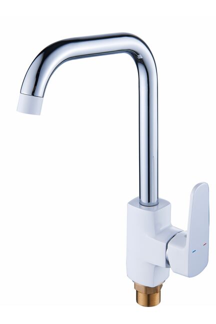 Страна производитель Китай Продается без подводки Однорычажный смеситель с высоким изливом, белое матовое покрытие, корпус из латуни, удобное управление и плавный ход, идеален для современной кухни.