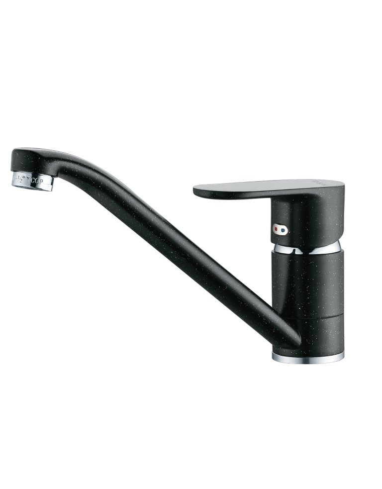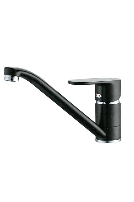 гарантия: 5 лет Смеситель CALORIE Люкс для кухни, однорычажный, черный гранит, корпус из латуни, поворотный излив, аэратор для экономии воды, керамический картридж.