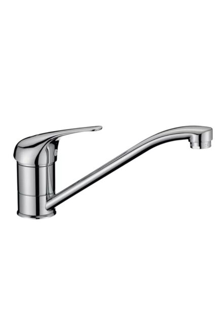 Однорычажный смеситель для кухни из латуни, хромированный, средний излив, плавное управление, устойчив к износу.