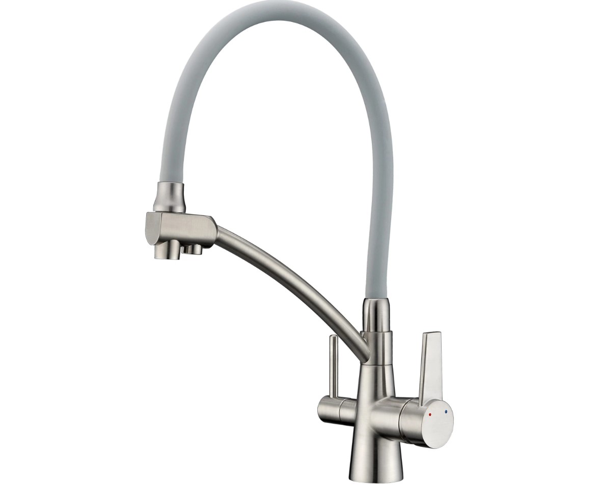 Смеситель д/кухни, GAPPO однорыч., канал д/фильтр.воды, серый гибкий излив, сатин G4398