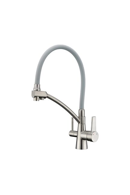 Гарантийный срок: 5 лет Материал: латунь Гибкий излив, канал для фильтрованной воды, прочный латунный корпус, сатиновое покрытие и современный дизайн для вашей кухни.