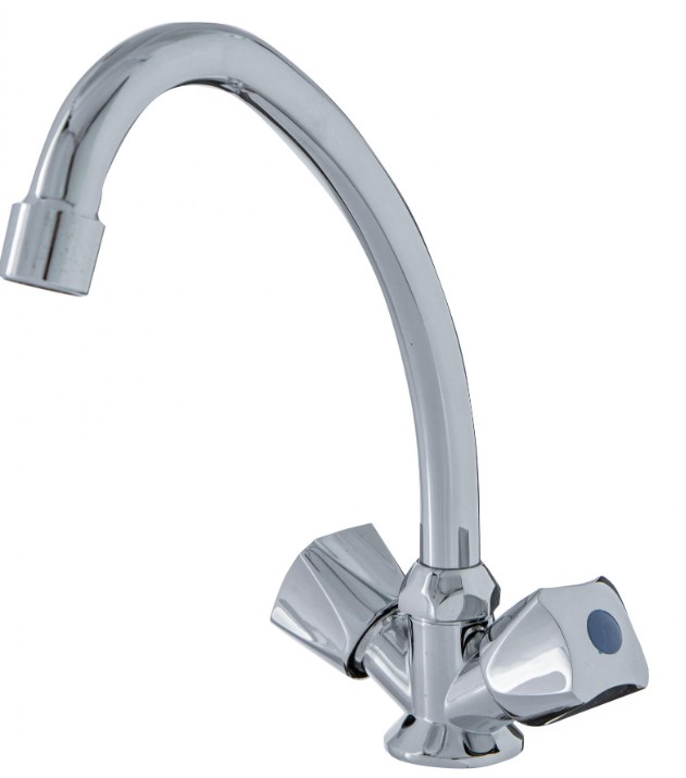 Двуручный смеситель, хром, латунь, поворотный излив, простая установка, точная регулировка воды, долговечность, оптимален для кухни.