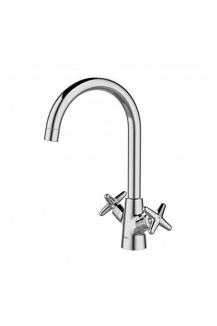 Двуручный смеситель с хромированным покрытием и изливом 20 см — надёжность, удобство регулировки и долговечность для вашей кухни.