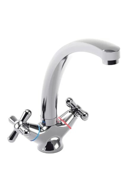 Гарантия: 5 лет Механизм:Латунные трехпроходные вентили с керамическими дисками 180°. Материал:Латунь Двуручный смеситель для кухни с высоким изливом и латунным корпусом, обеспечивает точную регулировку воды и простоту монтажа.
