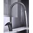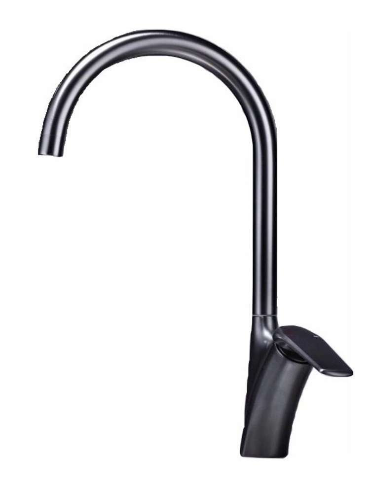 Современный черный смеситель, однорычажный, прочный корпус, керамический картридж, свободный излив, легкая установка, экономит воду.