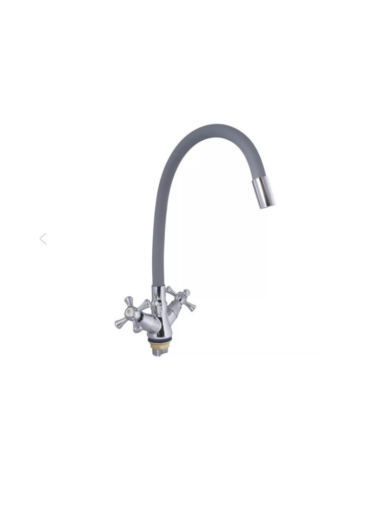 Смеситель д/кухни, VODEN двуручн., серый гибкий гусак 8924 А86G