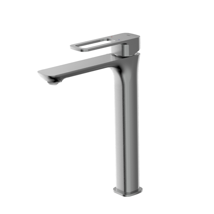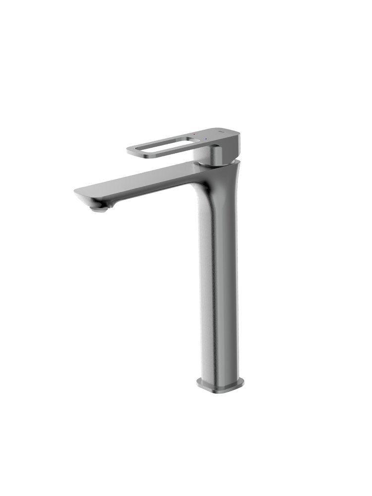 Однорычажный смеситель с покрытием графит, корпус латунь, керамический картридж, монтаж на умывальник. Современный дизайн, гарантия 5 лет.