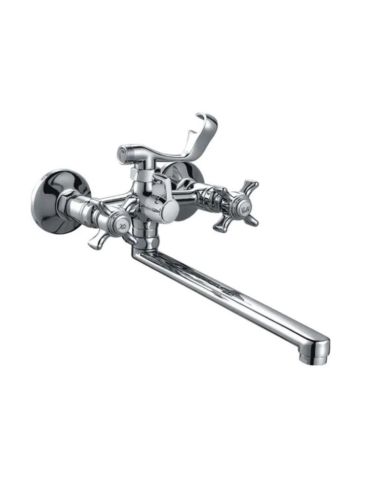Стильный и надежный смеситель идеально подойдет для современной ванной комнаты, обеспечивая удобство и долгий срок службы. Универсальная конструкция подходит для монтажа на стену, а длинный излив 35 см позволяет комфортно пользоваться как ванной, так и умывальником.