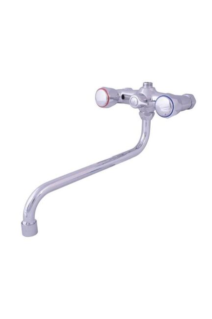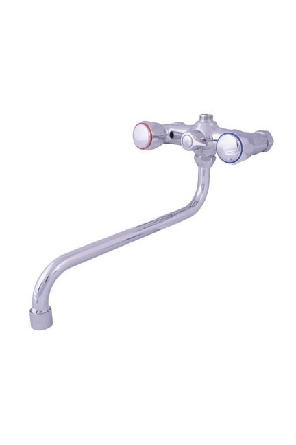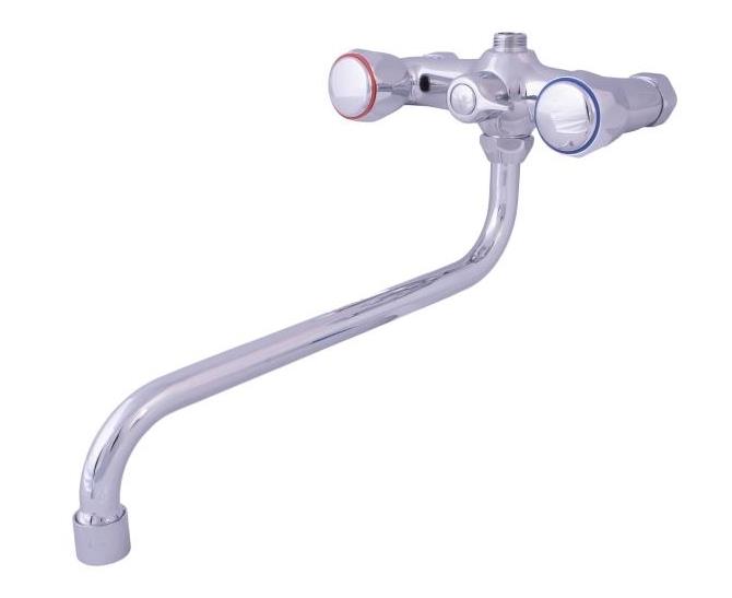 Двухвентильный смеситель с поворотным изливом 30 см, хромированное покрытие, простая установка и точный контроль температуры воды.
