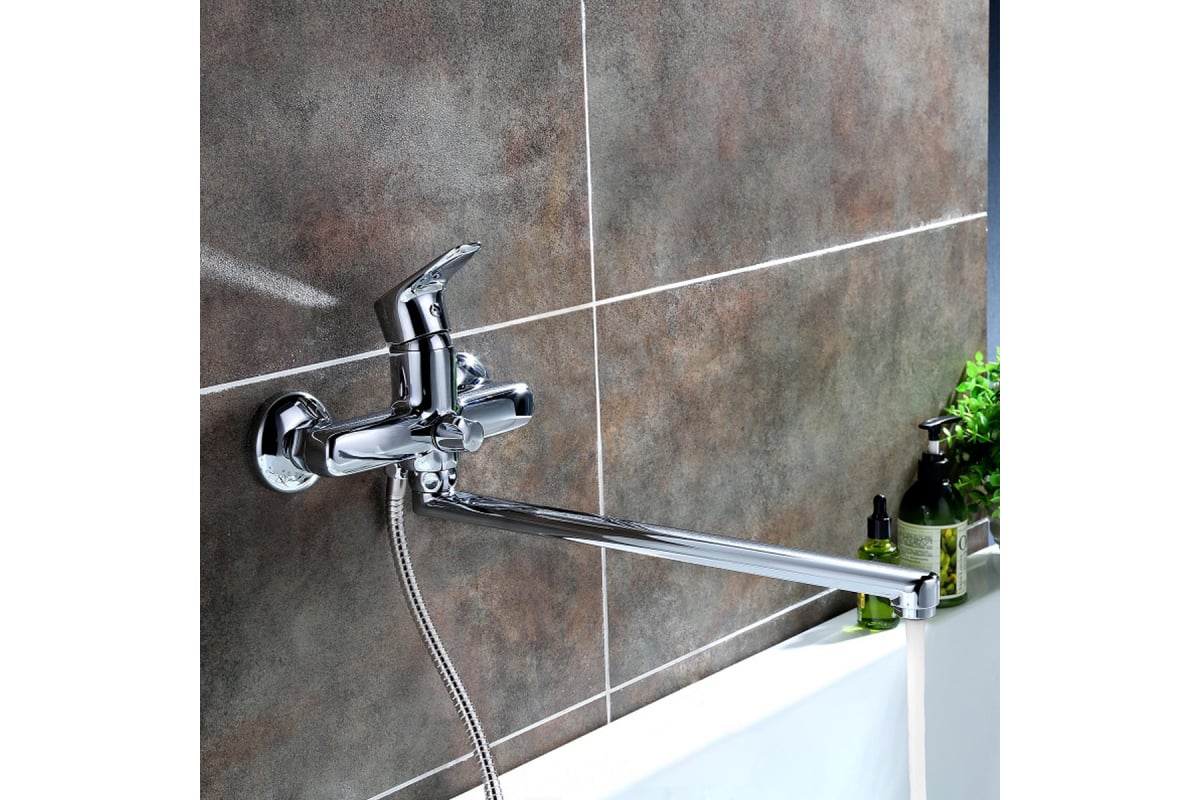 Однорычажный смеситель с изливом 40 см, прочная латунь, хром, универсальное использование, плавный ход, простая установка, долговечность