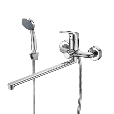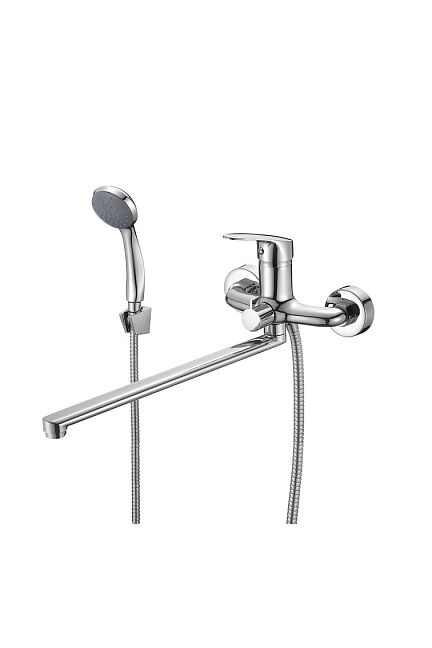 Однорычажный смеситель с изливом 17 см, латунь, хром, защита от коррозии, плавная регулировка, установка на стену, для ванны и душа.