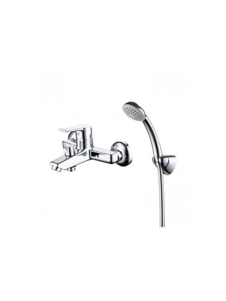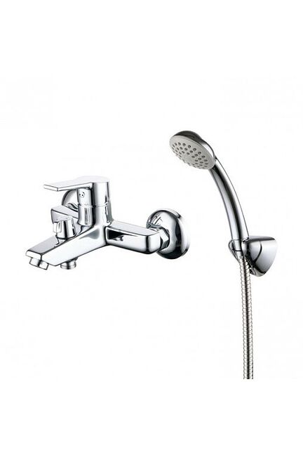 Однорычажный смеситель: латунный корпус, керамический картридж, хромовое покрытие, излив 15 см, монтаж на ванну, для компактных пространств.