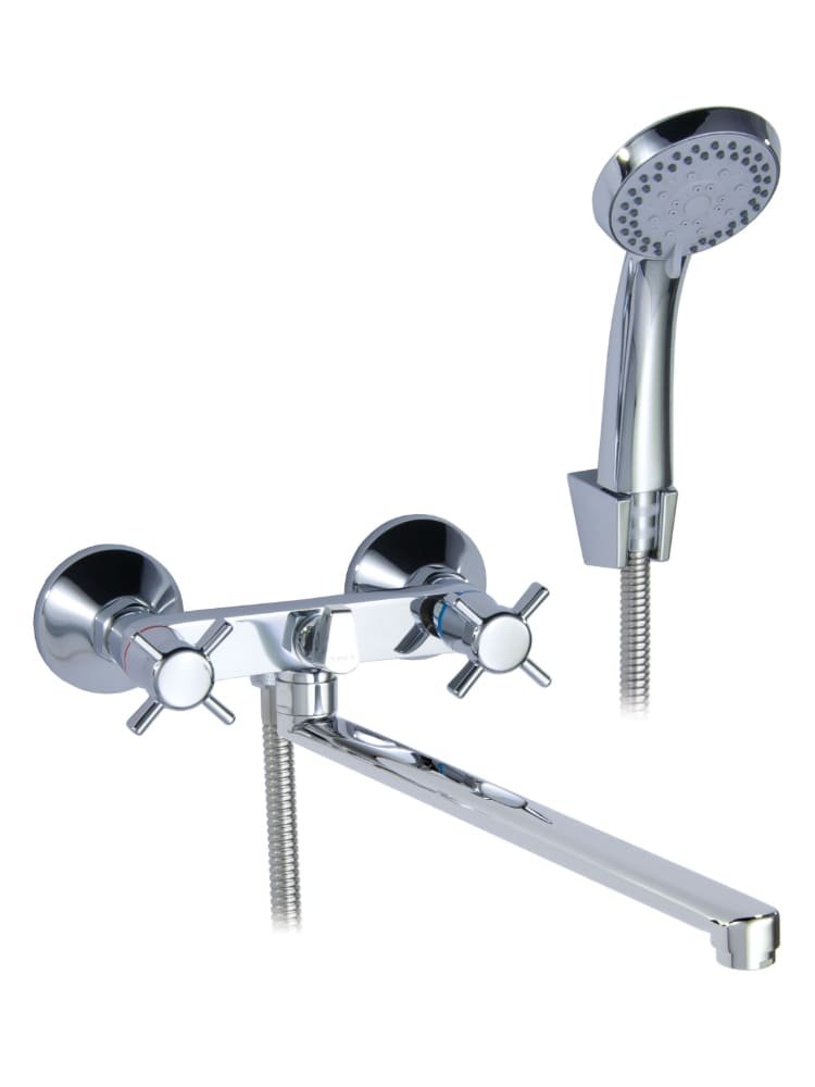 Гарантия: 5 лет Картридж с керамическими дисками. Материал: латунь Двуручный смеситель с изливом 35 см, плавная регулировка воды, надёжный механизм, подходит для ванны и раковины, современный дизайн.