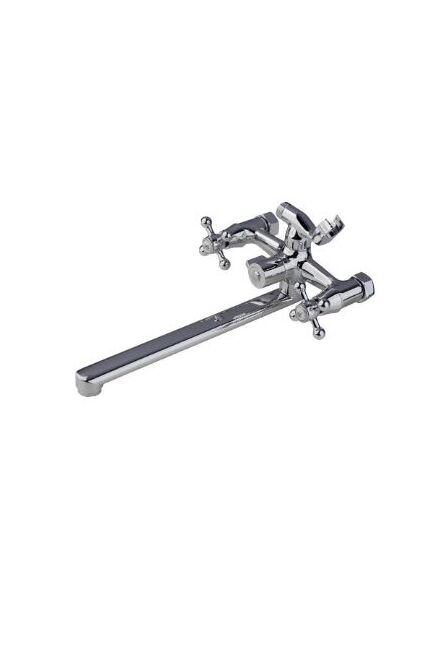 Практичный двуручный смеситель с L-гусаком 30 см, удобный для ванной и раковины, из латуни с антикоррозийным покрытием, для настенного монтажа.