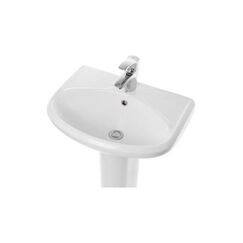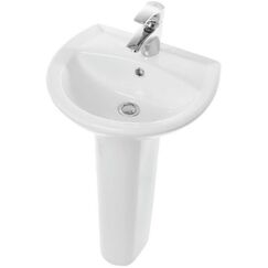 Компактный фарфоровый умывальник с пьедесталом, легко монтируется, устойчив к царапинам и воздействию химии, скрывает коммуникации.