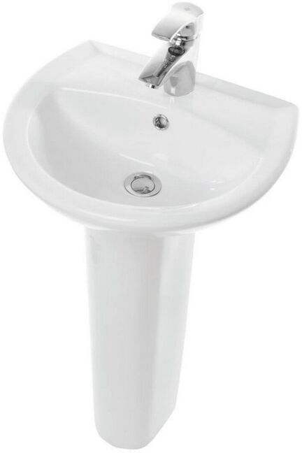 Компактный умывальник из прочной керамики, с пьедесталом, прост в уходе, скрывает трубы, подходит для любых санузлов и интерьеров.