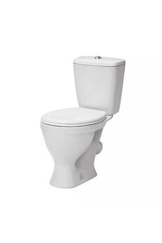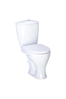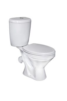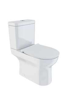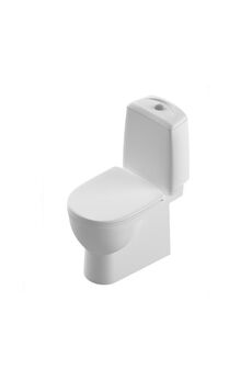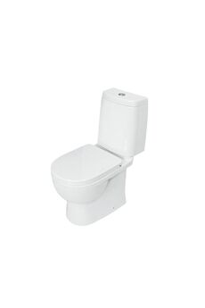 Компактный унитаз с косым выпуском, двойным смывом и прочным сиденьем идеально подходит для стандартных санузлов квартир и домов.