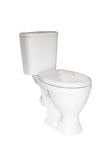 Экономичный унитаз с косым выпуском, компактный размер, легкая установка и уход, устойчивая керамика, подходит для большинства санузлов.