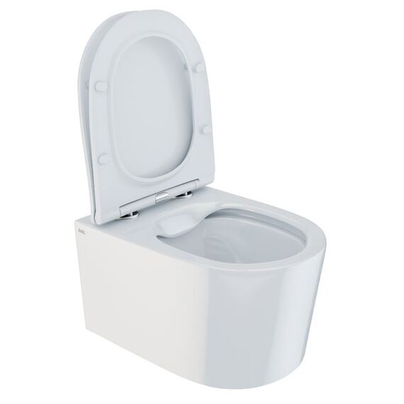 Подвесной компактный унитаз 490×370×340 мм с безободковой чашей, горизонтальным выпуском и легким уходом для современных санузлов.