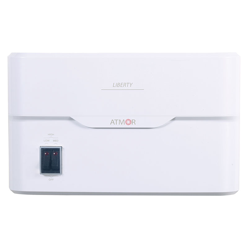 Проточный электрический водонагреватель Atmor LIBERTY 5 KW SHOWER. Тип водонагревателя проточный. Способ нагрева электрический. Максимальная температура нагрева воды 55 градусовC. Потребляемая мощность 5 кВт. Напряжение сети 220.Установка настенная. Подводка нижняя. Глубина 99 мм. Ширина 289 мм. Высота 186 мм. Гарантийный срок 1 г. Цвет белый. Компактный проточный водонагреватель 5 кВт: мгновенный нагрев, комплект кран+душ, безопасен, удобен для дома, дачи и офиса.