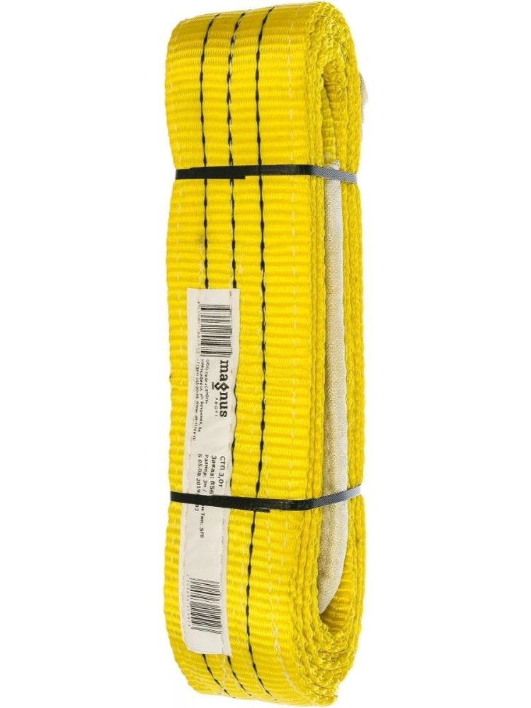 Строп текстильный петлевой (СТП) Magnus Profi – съемное приспособление ленточного типа для подъема грузов. Изготавливается из широкой полиэстеровой ленты и двух петель по краям из этого же материала. Тканевая лента является несущим элементом стропа – именно на нее приходится основная нагрузка при подъеме и перемещении груза. Строп 3 т, длина 5 м, ширина 90 мм. Для строительных, монтажных и складских работ. Прочный, безопасный, устойчив к маслам и износу.