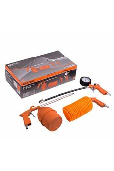 Рабочее давление: 2,0-4,0 атм. Расход воздуха: 120 мл. Размер входного штуцера: 1,4 дюйма. Длина шланга: 5 м. Вес: 1,4 кг. Комплектность: Пистолет продувочный: 1. Пистолет для подкачки шин с манометром: 1. Штуцер: 2. Шланг спиральный: 1. Игла: 1. Многофункциональный набор пневмоинструментов: 6 насадок, для покраски, продувки, мойки и накачки шин, совместимость с любыми компрессорами.