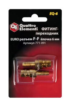 Фитинг-переходник EQ-6 Quattro Elementi - набор из 2-х принадлежностей для компрессорного оборудования. Фитинги используются для подсоединения шланга к компрессору. Имеют стандартное соединение папа EURO - папа елочка 6 мм. Обеспечивают надежное соединение и долгий срок эксплуатации. Удобный фитинг для соединения EURO и шланга 6 мм. Прочный металл, быстрое соединение, устойчивая фиксация и антикоррозийная защита.