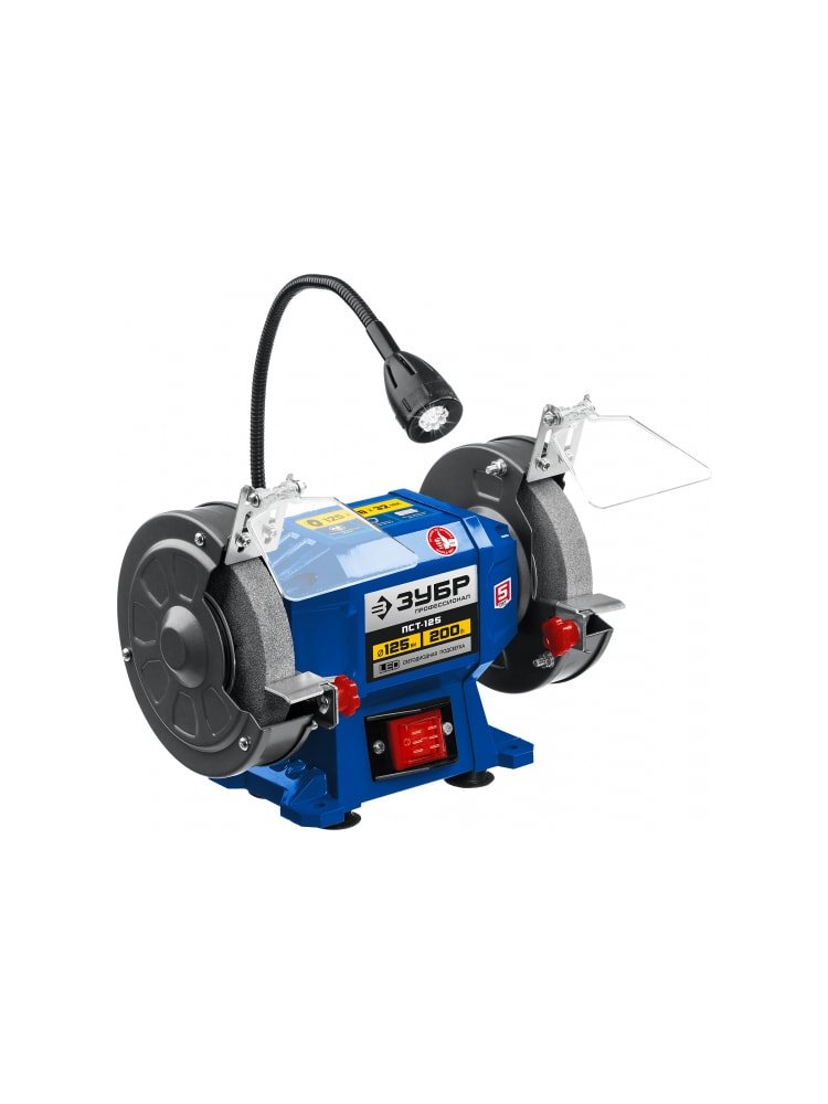 Профессиональный заточной станок ЗУБР d 125 мм ПСТ-125 подходит для эксплуатации в мастерской и на мелкосерийном производстве. Данная модель имеет большой ресурс двигателя. Станок отличается повышенной точностью установки заточных кругов и компактным корпусом. Станок предназначен для заточки, а также сухой шлифовки инструмента и металлических заготовок. Компактный точильный станок 200 Вт с подсветкой, круг 125 мм, 2950 об/мин — идеален для заточки инструментов в мастерской или гараже.