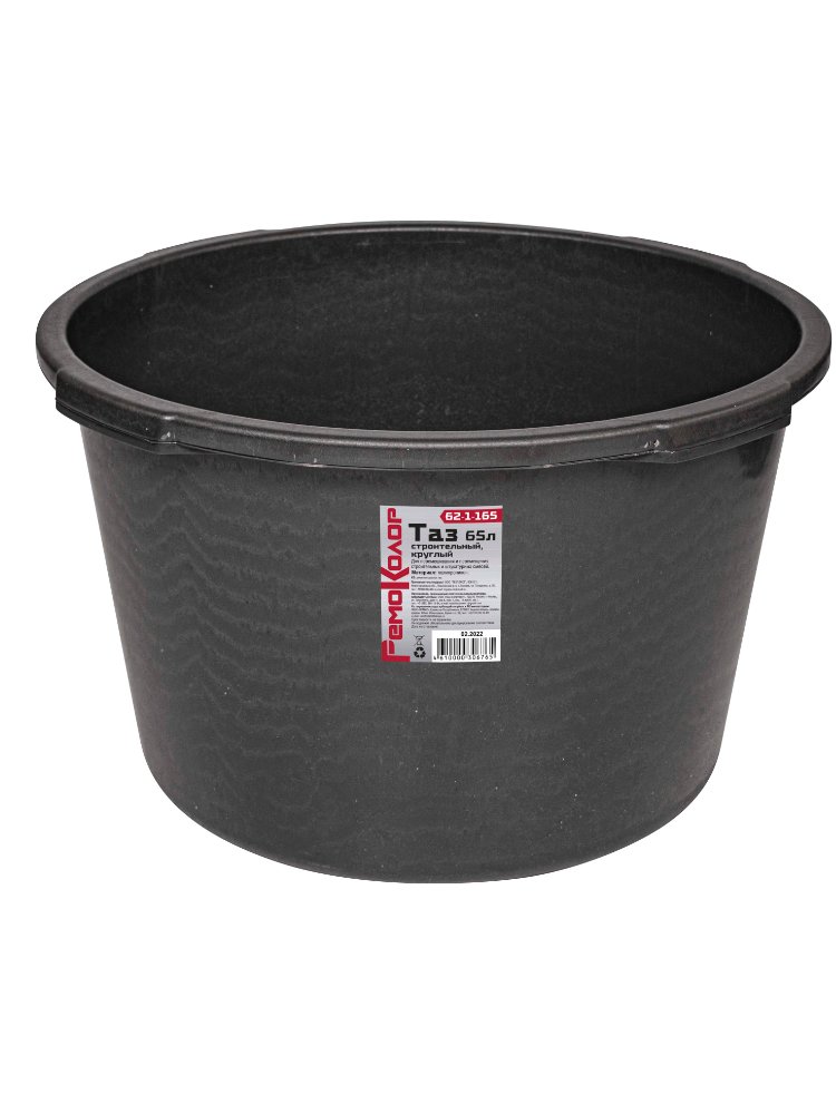 Для строительного и хозяйственного назначения. Изготовлен из вторичного полипропилена с добавлением эластичных добавок в ввиде ПВД. Вес 1,86кг, высота - 33,5см, верхний диаметр - 51см, нижний диаметр - 42см. Для замешивания и транспортировки строительных смесей, объем 65 л, прочный пластик, повышенная износостойкость.
