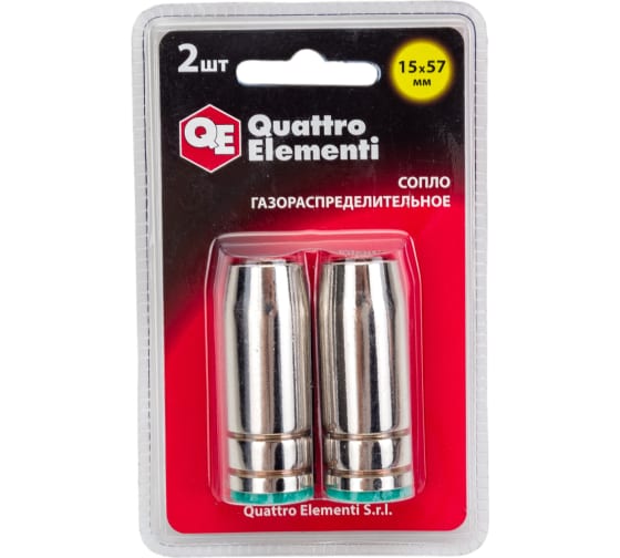 Сопло QUATTRO ELEMENTI 771-206 предназначено для формирования равномерного потока защитного газа и защиты деталей горелки от механических воздействий во время полуавтоматической сварки MIG/MAG. Имеет высокую износостойкость, несмотря на постоянное взаимодействие с раскаленным металлом. Количество — 2 шт. Диаметр — 15 мм. Металлическое сопло 15х57 мм для сварки MIG/MAG, 2 шт.; прочное, обеспечивает равномерную подачу газа и чистый шов, подходит для популярных горелок.