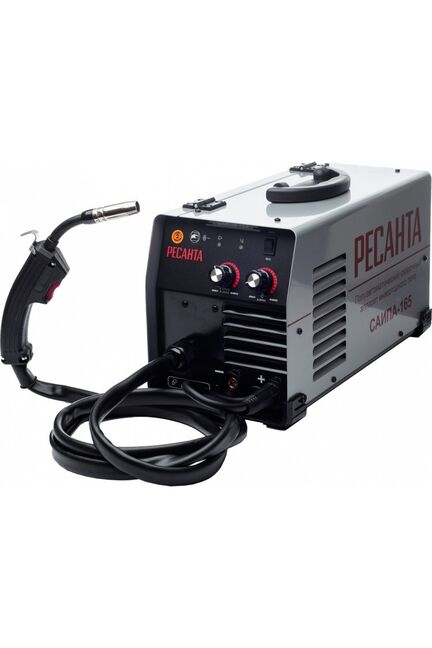 Сварочный полуавтомат Ресанта САИПА 165 – источник питания инверторного типа, функционирующий на постоянном токе. Прибор разработан для сваривания движущим проволочным электродом в аргонной, углекислой среде, либо плавящимся, с рутиловым покрытием – способом ММА (ручная дуговая сварка). Полуавтоматический аппарат быстро, эффективно выполняет соединение различных металлических конструкций и заготовок, изготовленных из цветных металлов и нержавейки, методом Mig Mag. Полуавтомат Ресанта 165 работает от стандартной однофазной сети питания 220 Вольт. В конструкции применены основные функции, формирующие высокое качество ключевых параметров сварной ванны: антиприлипание, прогон проволоки на холостом ходу (обеспечивает моментальную очистку сопла горелки), опция FCAW (сварка без газовой среды – методом ММА, с применением порошковой проволоки). Чтобы исключить прожигание тонколистовой стали, в компоновке САИПА Resanta 165 внедрена функция обратной полярности. Полуавтомат для сварки MIG/MAG, ток 30–165А, стабильно вари