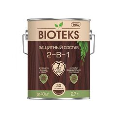 Для деревянных поверхностей из брёвен, вагонки, бруса, строганных и пиленых дощатых фасадов, термообработанной и пропитанной под давлением древесины снаружи помещений.Расход 12 - 17 м2/л по строганой и бревенчатой поверхности древесины; 7 - 9 м2/л по пилёной поверхности древесины. Разбавитель - Уайт-спирит. Время высыхания: до отлипа – 1 час, следующий слой можно наносить через – 2 часа, полное – не более 24 часов Антисептик для дерева, цвет тик, объем 2,7 л. Защищает от влаги, грибка и ультрафиолета, сохраняет структуру и увеличивает срок службы древесины.
