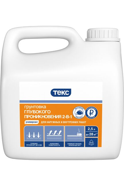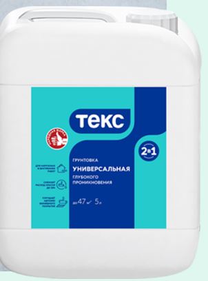ТЕКС Универсальная грунтовка 2в1: укрепляет, обеспыливает, глубоко проникает, подходит для всех минеральных оснований и сокращает расход отделочных материалов.