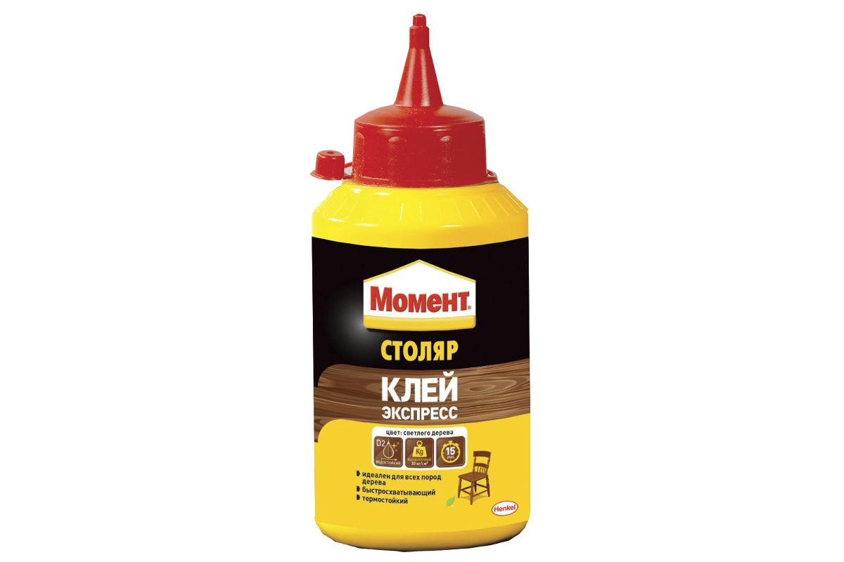 Клей для склеивания всех пород дерева, ДСП, фанеры, шпона, облицовочных материалов, картона, фурнитуры. Прочный воднодисперсионный клей для дерева, быстро фиксирует детали, светло-коричневый, без запаха и усадки. Для мебели и столярных работ.